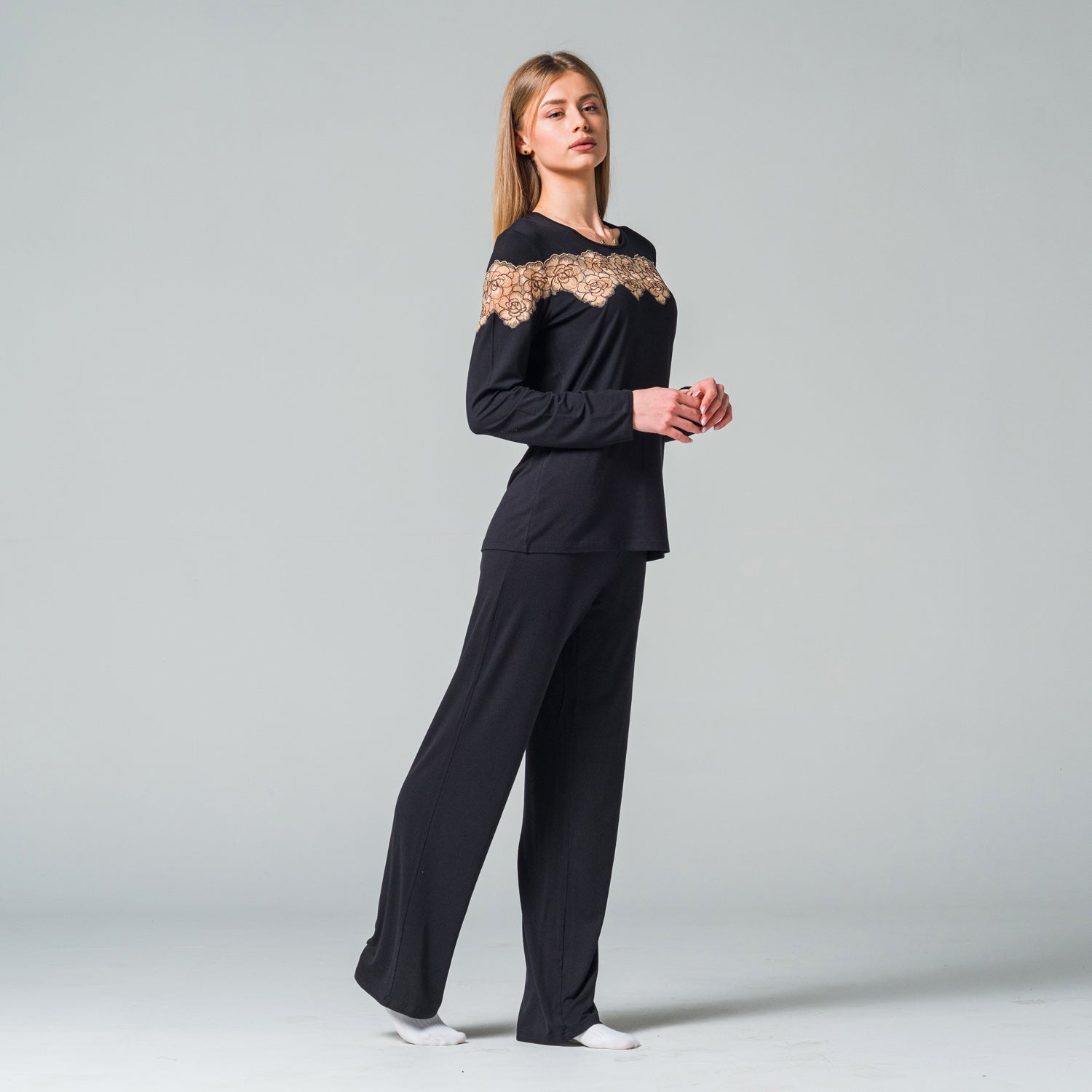 Луксозна Дамска Пижама с дантела "Black"
