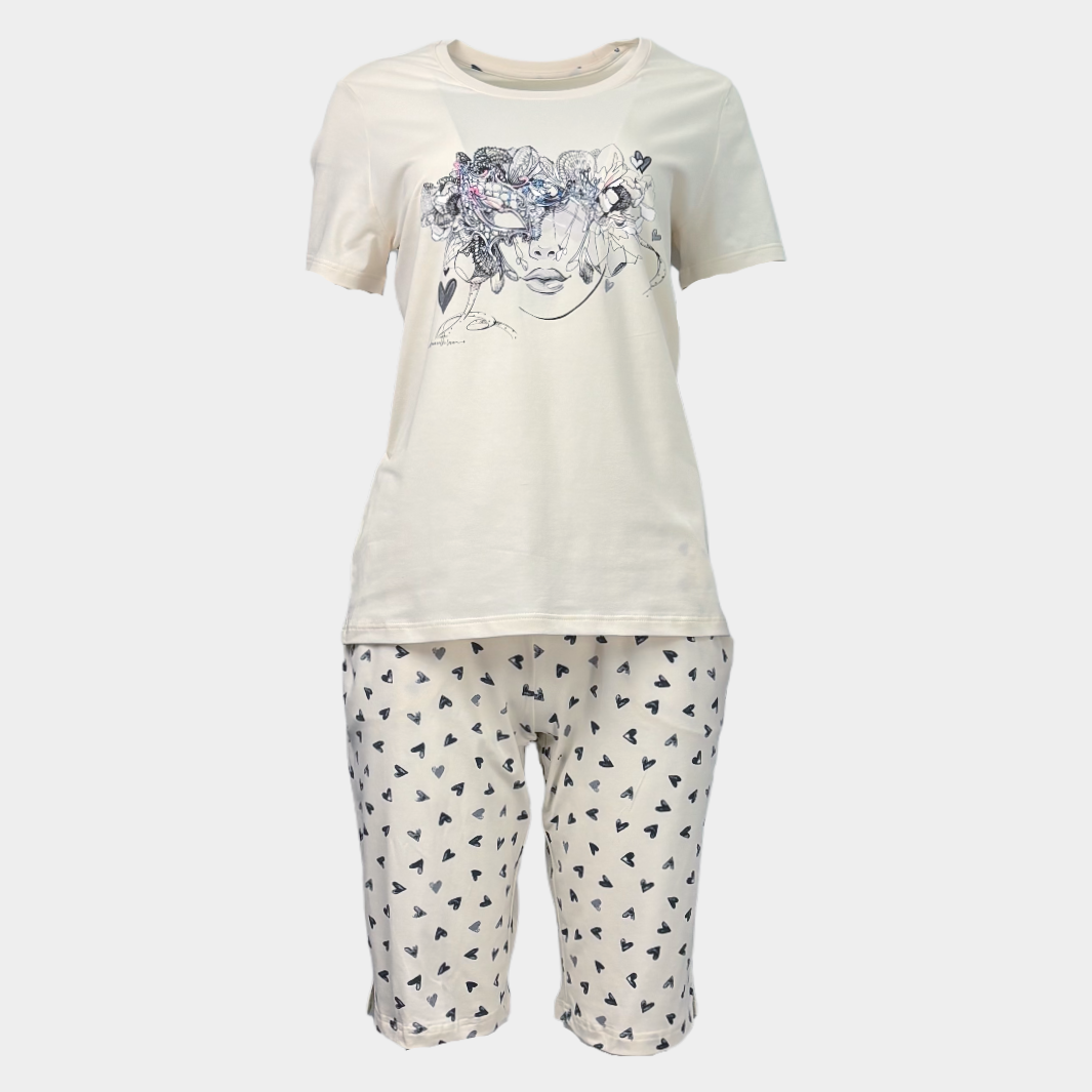 - Блуза с къс ръкав и с авторска картинка в цвят екрю