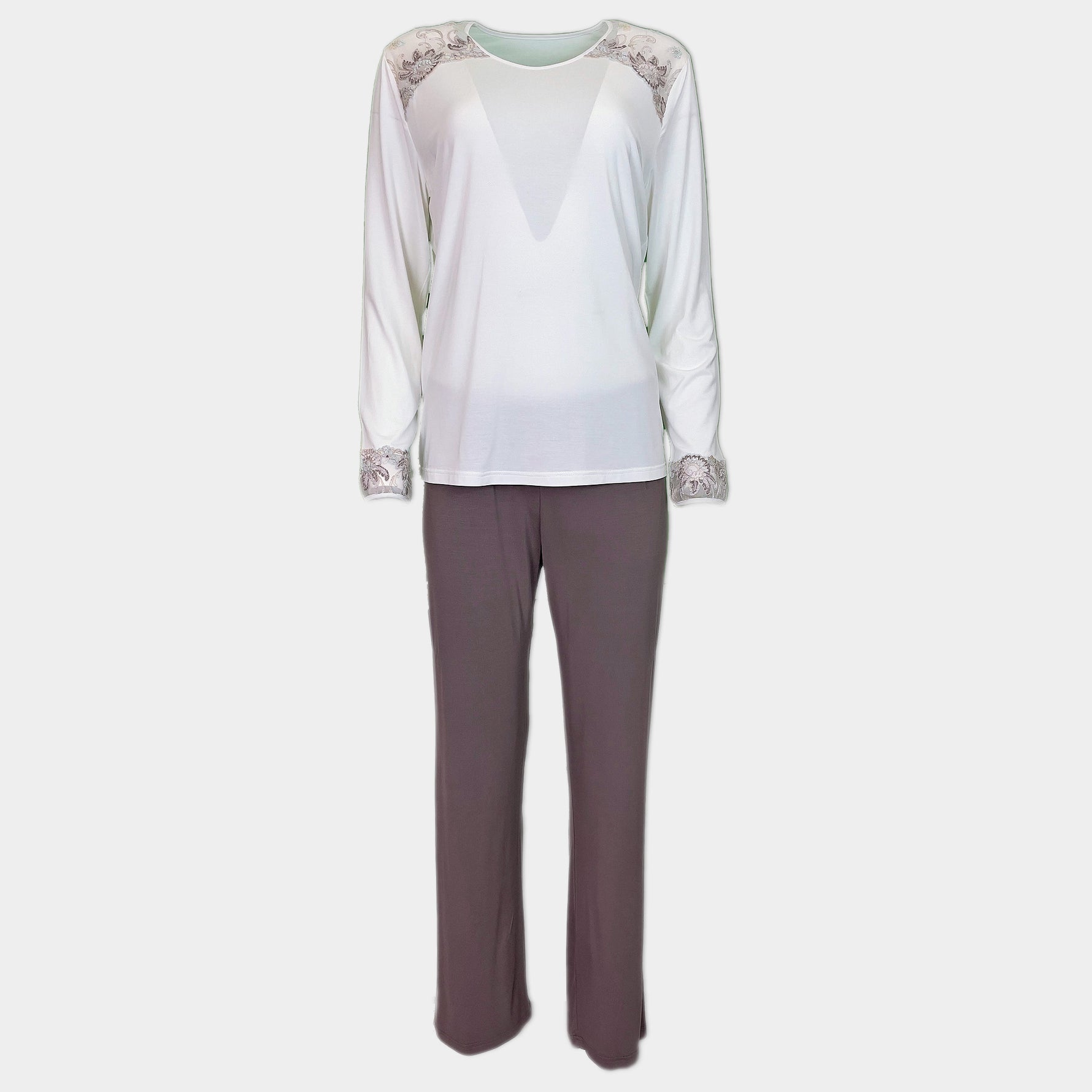 Дамски спален комплект от две части - блуза и дълъг прав панталон.