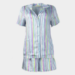 Пижама с лилави, сини и зелени райета