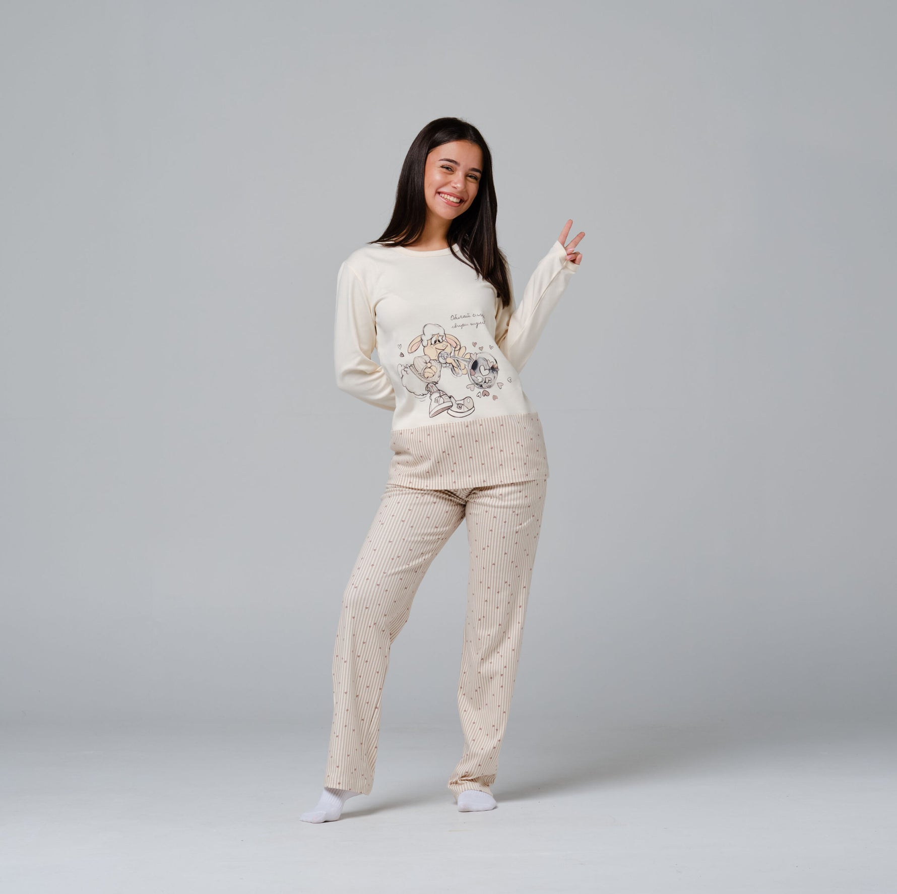 - Панталон на райета и принт на сърчица