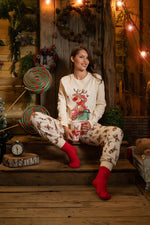 - Панталон с ластик на крачола и Коледна щампа на еленчета рисувана от екипа на Аффект