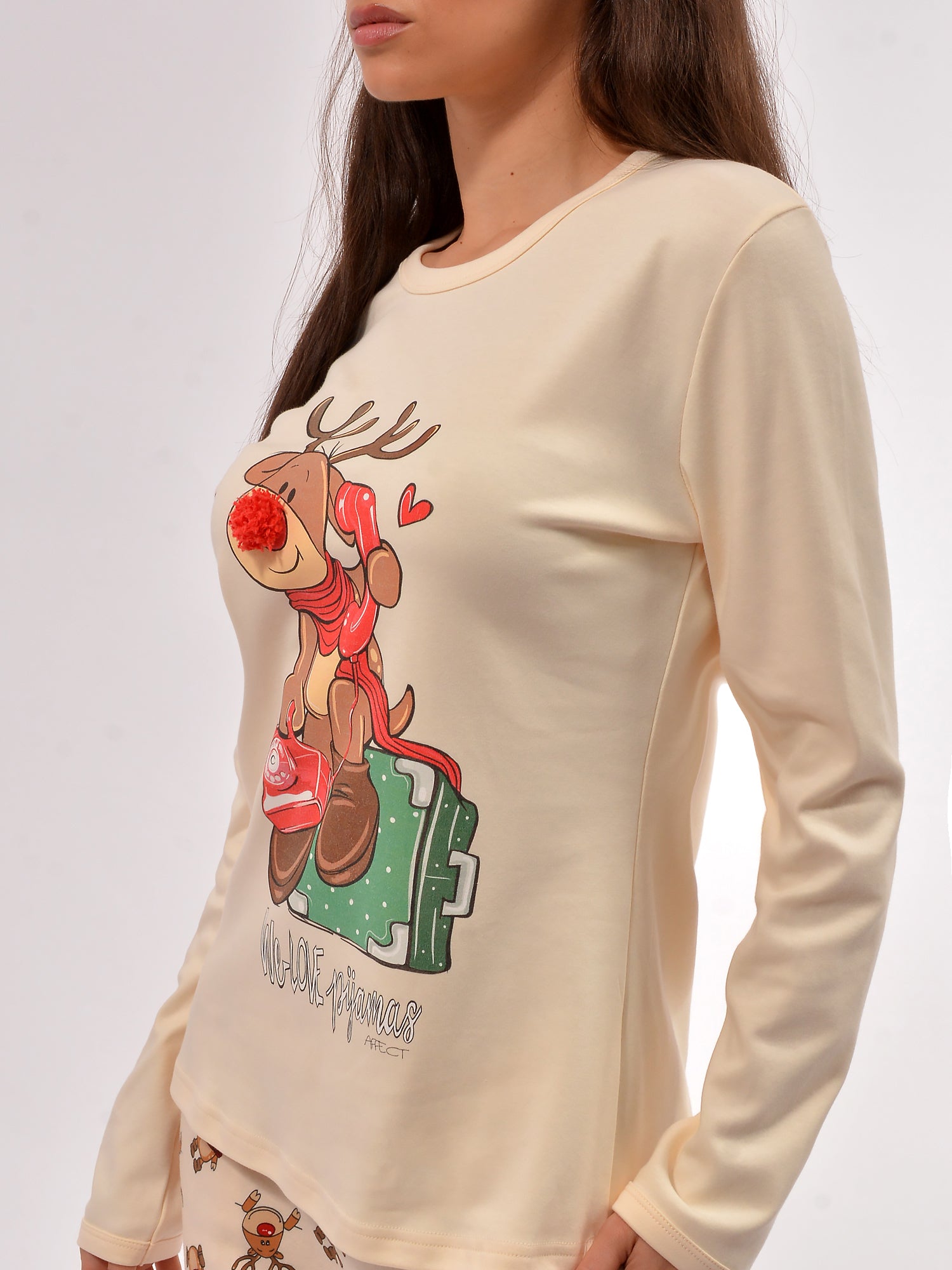 - Блуза с Щампа на Kоледно еленче и пришито декоративно топче