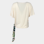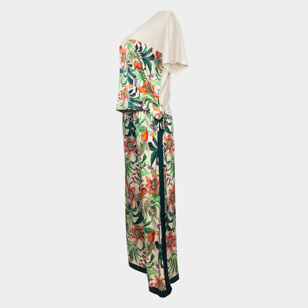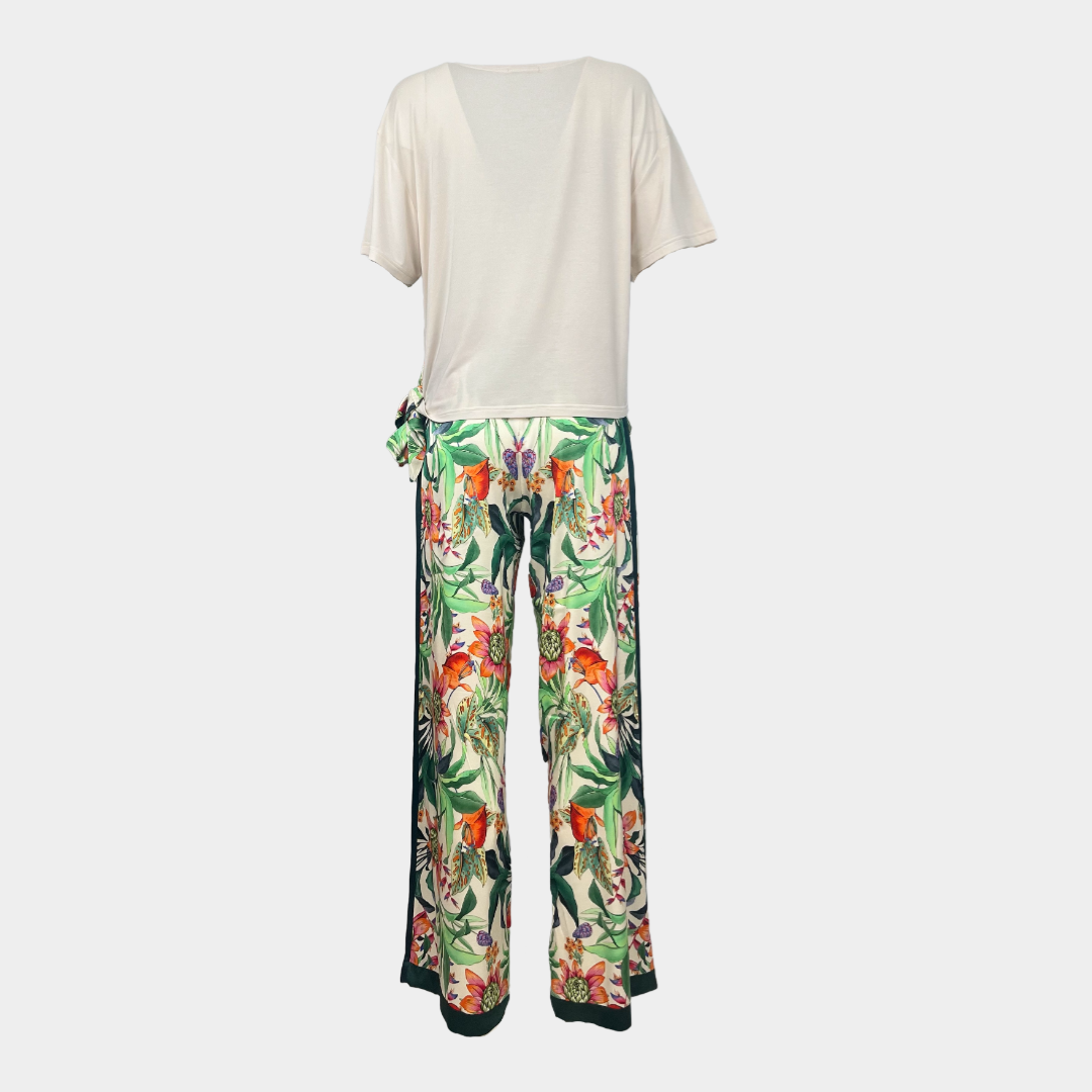 - Кремав цвят с тропически флорален принт в предната част