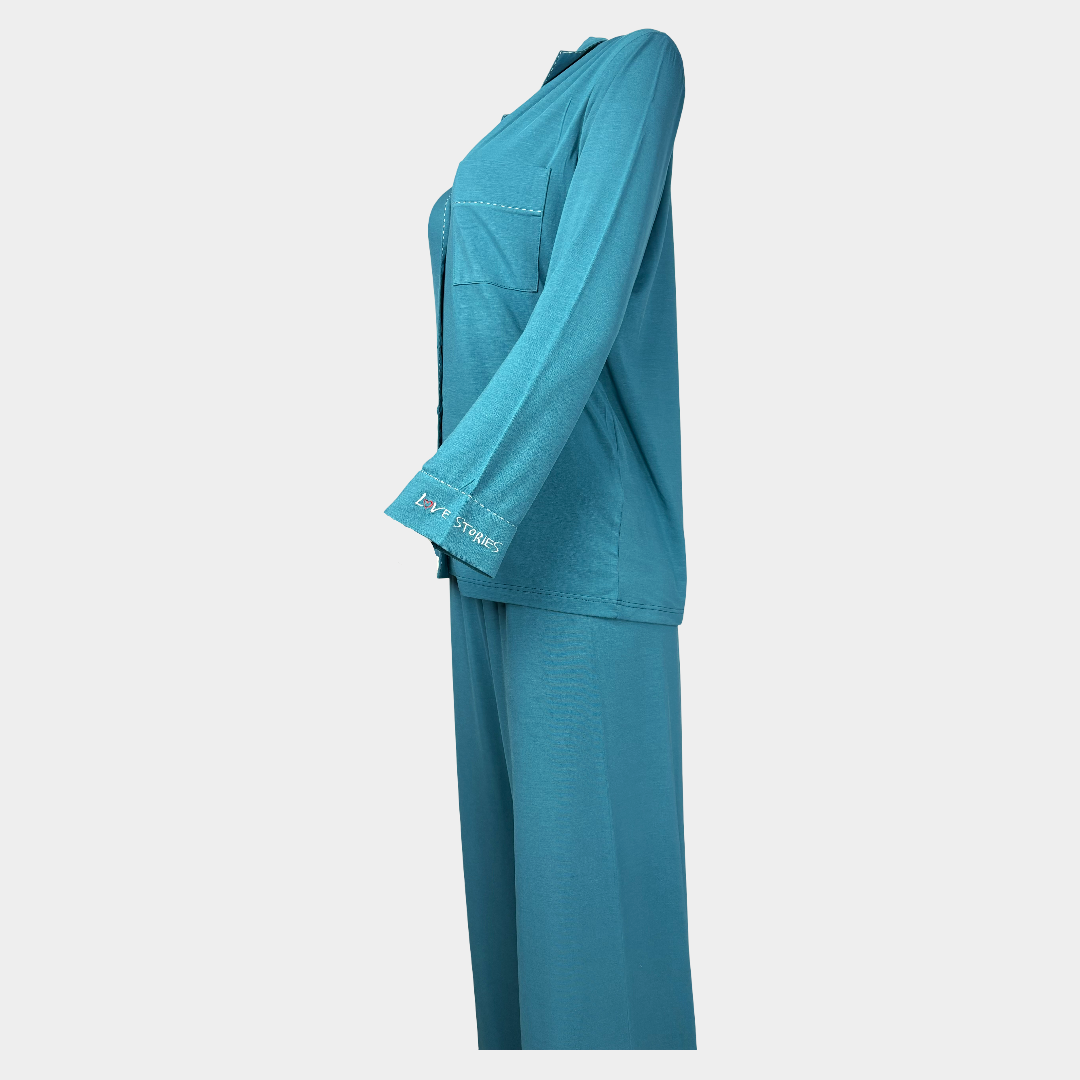 - Блуза с копчета, малък джоб и бял декоративен шев на ръкавите и яката