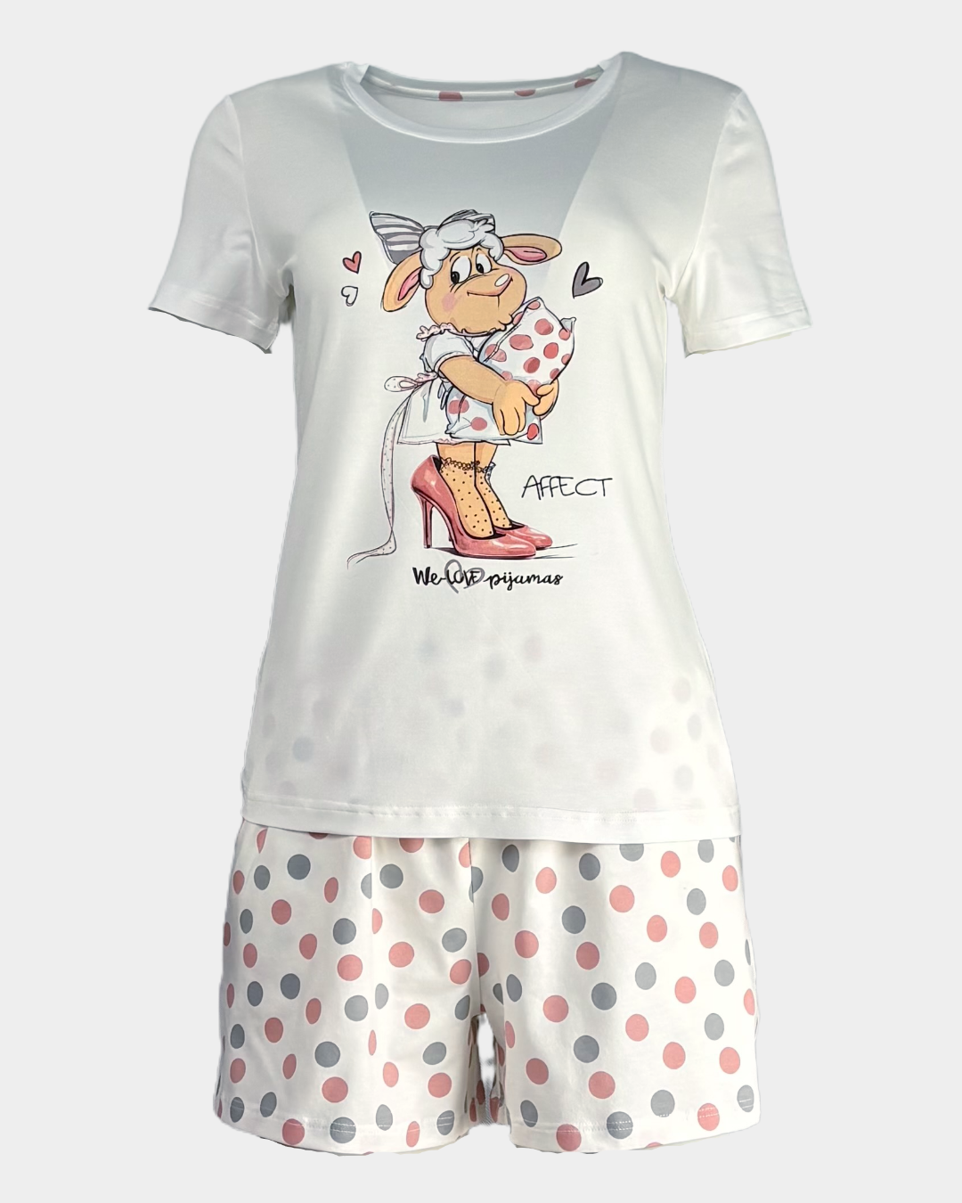 - Блуза с къс ръкав в цвят екрю с авторска картинка