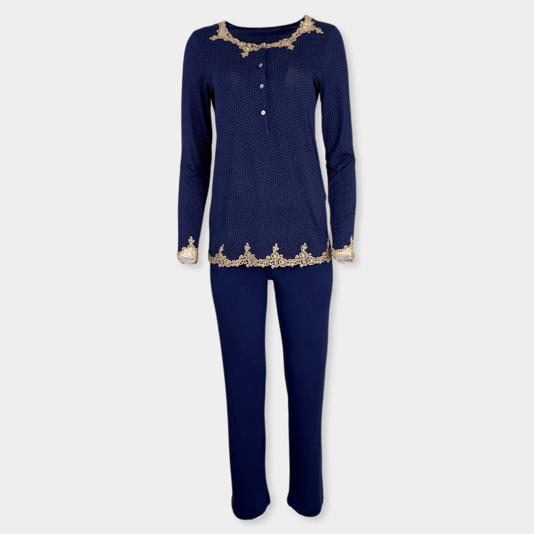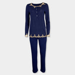 Дамски спален комплект от две части - блуза и дълъг прав панталон.